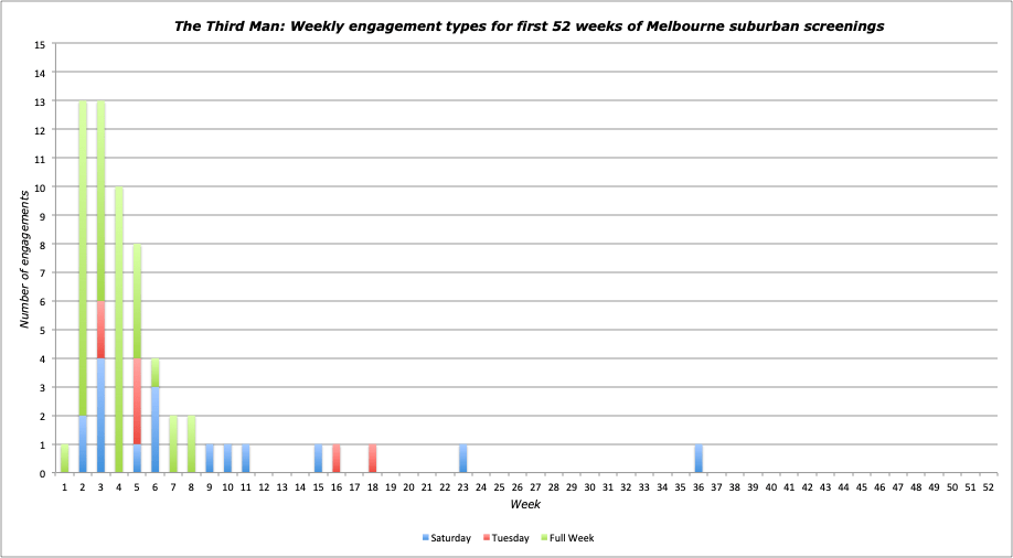 | South Yarra | Regent | Hoyts | 30/9/50 | 18 | T | 1 | Rusty’s Birthday |