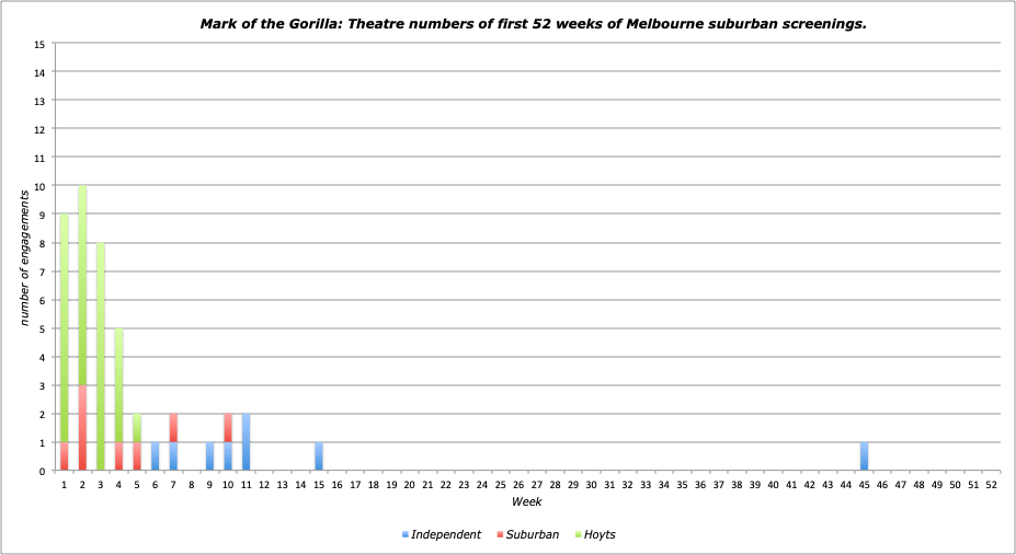 NOTES: Series entry that was used as a second feature to Whirlpool for most of its outings. Oddly, it actually managed 5 top bills of its own. That the Independent Port Melbourne Theatre would top-line it for a week, in its 45th (!) week shows the dire straits that venue was in at this time.
