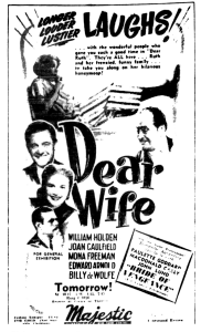 Melbourne Premiere Venue: Union’s Majestic theatre for three weeks from 9 December 1949 with Dear Wife as support.