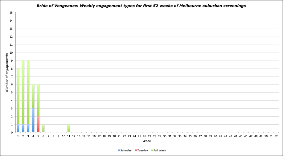 Notes: Torrid costumer that often Borgia-ed on the ridiculous, it cracked the 100 EF points due to being attached as support to the popular Dear Wife for most of its run (following it from the city). One of a few occasions that a predominantly Union release had an opening week at Hoyts Memorial as part of its wide release.