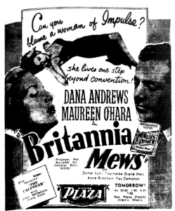 Melbourne Premiere Venue: Hoyts’ Plaza theatre for two weeks from 3 February 1950 as support to Britannia Mews.