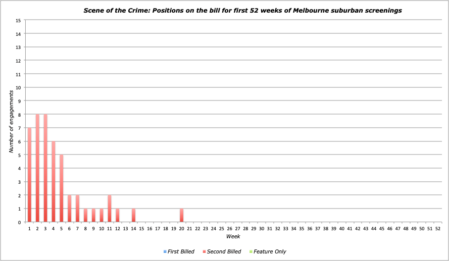 Notes: A high quality second feature from MGM, one that would have been a worthy top-biller for Hoyts on Tuesday nights but which got out of the support ghetto (almost always with its city partner, Conspirator) for its Melbourne duration on the Independent circuit. Still, the number of weeks it played provided enough points to just put it over the line into the top half of EF rankings for the year.