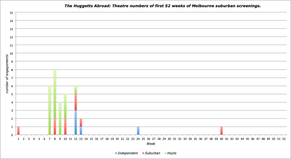 Notes: The final entry in the cosy Huggetts series scraped up some points as a support to The Third Man, benefitting from that film’s full weeks and Saturdays. The most notable aspect of its screening history was an opening suburban week at the Palais and then vanishing for 6 weeks until Hoyts decided to bring it into the wide-ish release fold. Even then it had a higher ratio of Independent and Suburban bookings than most Hoyts-chain product.
