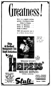 Cast: Olivia de Havilland, Montgomery Clift & Ralph Richardson