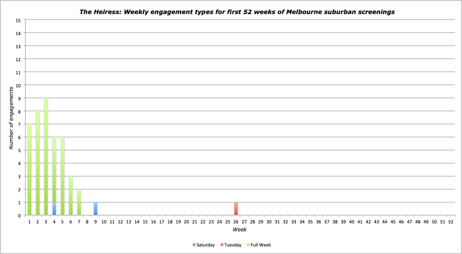 Notes: The critically acclaimed (and Oscar winning) adaptation of Henry James’ novel was an EF blockbuster – one of the few films to exceed 400 points (ranking 8th) and placing in the top ten of another five metrics. 40 full weeks and 12 feature only screenings took it into the stratosphere.