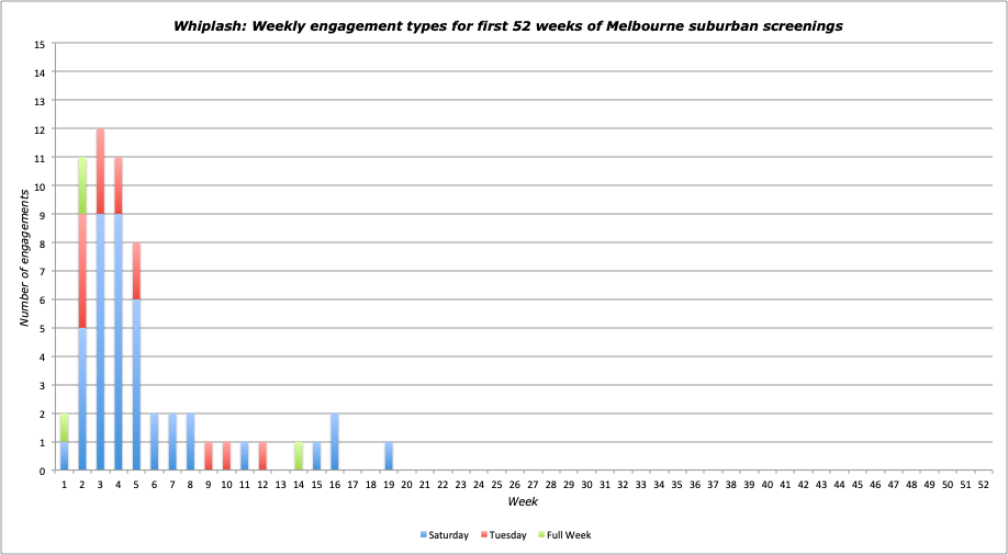 Notes: Warners noir that did far better than most on the Hoyts circuit, being granted 40 Saturday night slots (plus 4 weeks) a 57 ranking for EF points and top 10 for engagements, Saturdays and top billings. A most commendable effort.
