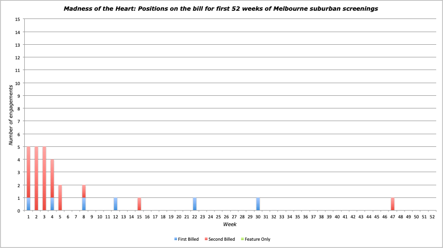 Notes: One of several duds that helped finish off Margaret Lockwood’s big screen stardom, this film couldn’t even last longer than a fortnight at the Athenaeum. After that Hoyts gave it a perfunctory suburban release in which it steered clear of the working class districts and was hidden away on Tuesdays supporting Cover Up. Ranked 8th for average metres travelled and 12th for Tuesdays as a % of its total engagements.
