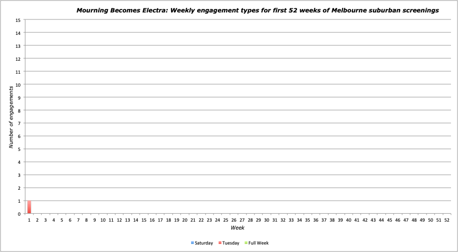 Notes: This major mis-judgement from RKO surprised nobody when it died at the US box office, no matter its critical plaudits. In Melbourne it went out via the Savoy arthouse where the morose 173 minutes were appreciated. Of course it was hardly expected to be at all released into suburban venues, yet Hoyts provided it with a single booking – a Tuesday – at the Malvern Victory. Obviously bottom of the ladder in most rankings.