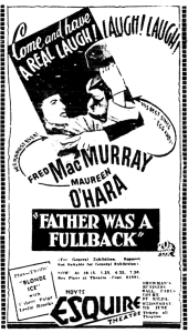 Melbourne Premiere Venue: Hoyts’ Esquire theatre for two weeks from 12 May 1950 supporting Father Was a Fullback.