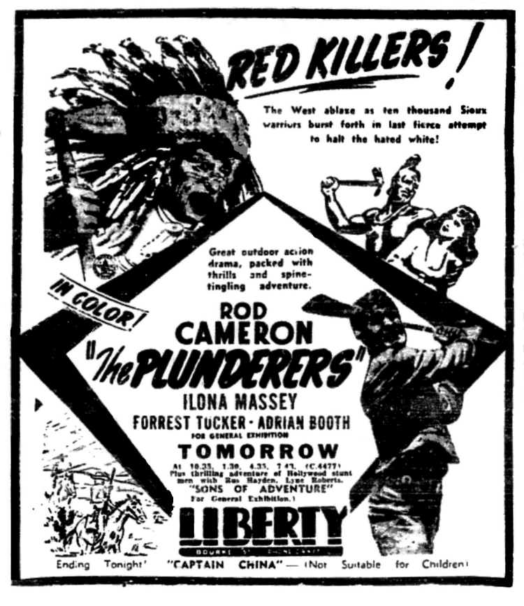 Melbourne Premiere Venue: Union’s Liberty theatre for one week from 21 April 1950 supporting The Plunderers.