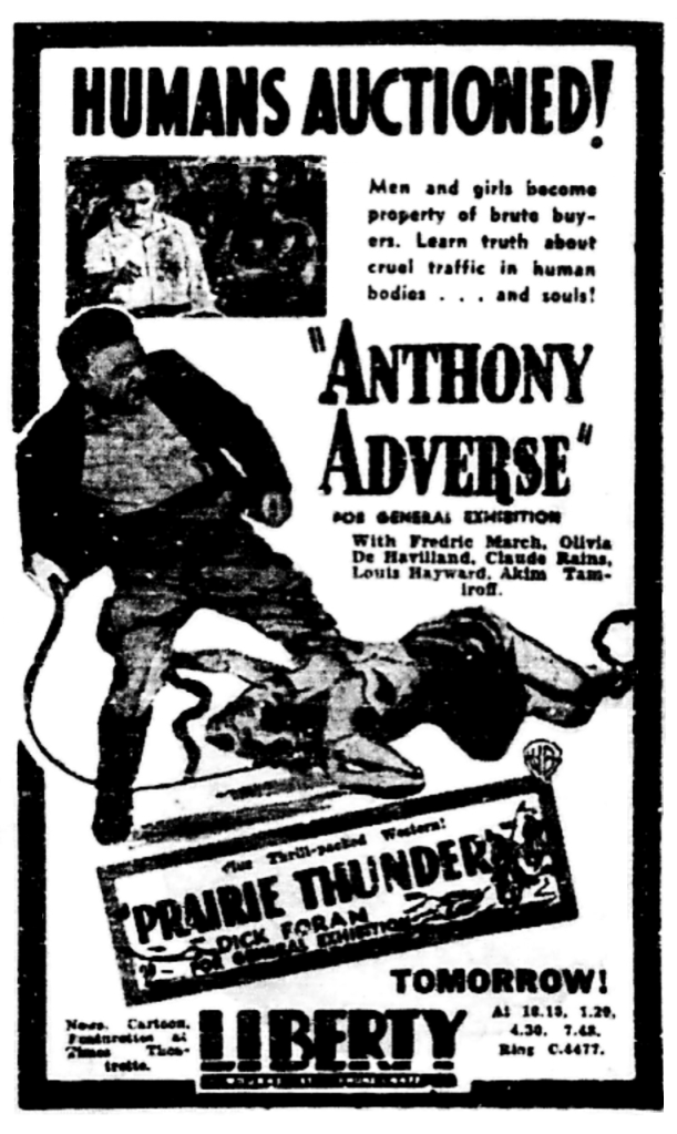Melbourne Premiere Venue: Union’s Liberty theatre for one week from 14 July 1950 supported by Prarie Thunder (Date of re-issue. Originally released in 1936)