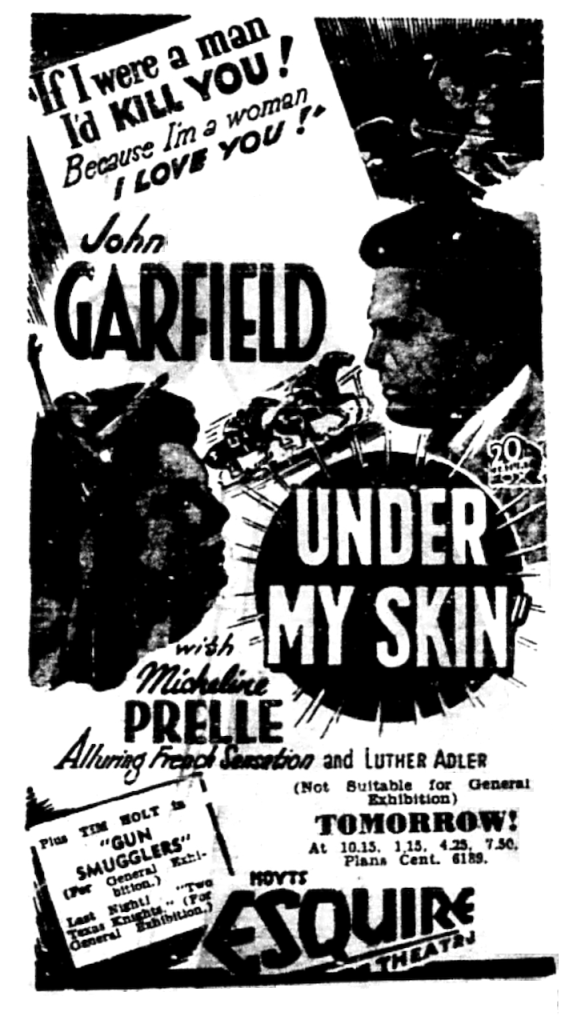 Melbourne Premiere Venue: Hoyts’ Esquire Theatre for two weeks from 13 October 1950 supporting Under My Skin.