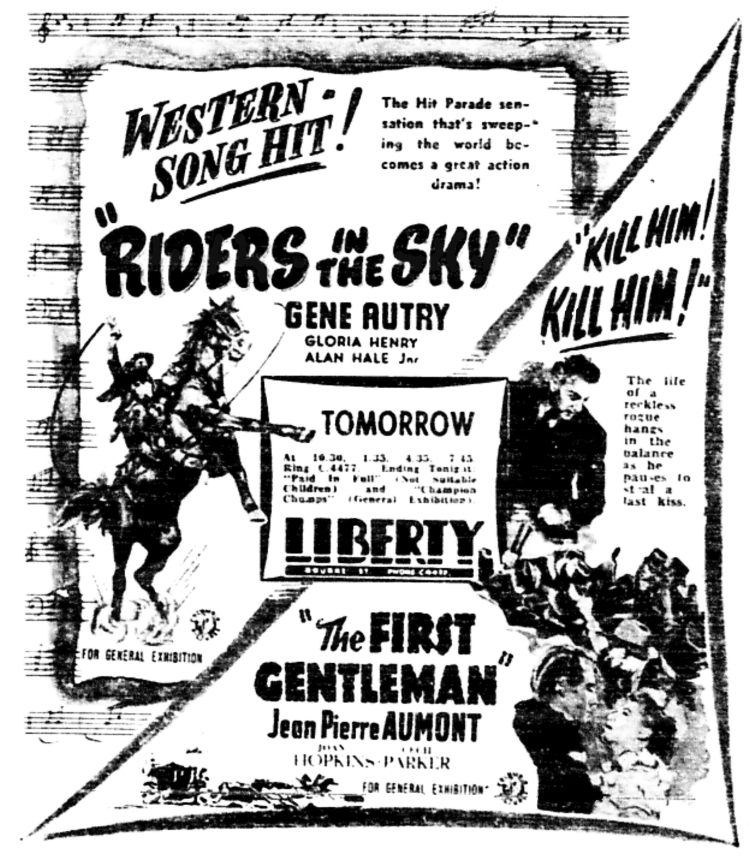 Melbourne Premiere Venue: Union’s Liberty Theatre for one week from 7 July 1950 supporting Riders in the Sky.