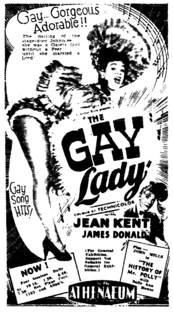 Melbourne Premiere Venue: Hoyts’ Athenaeum for five weeks from 15 September 1950 supporting The Gay Lady.